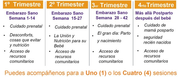 Comenzando bien/ Becoming a Mom es un currículo prenatal bilingüe diseñado por March of Dimes una organización dedicada a mejorar la salud de mamá y sus bebé mediante la prevención de defectos congénitos, nacimientos prematuros, y la mortalidad infantil. Para mamas en un grupo virtual de apoyo.